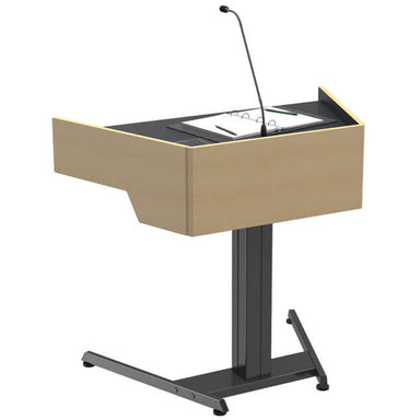The Counselor lift is the perfect height adjustable podium. With the press of a button, the work surface can go from 31.5" all the way to 47.25". That means just about anybody can present from this adjustable height podium stand.