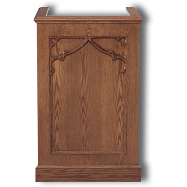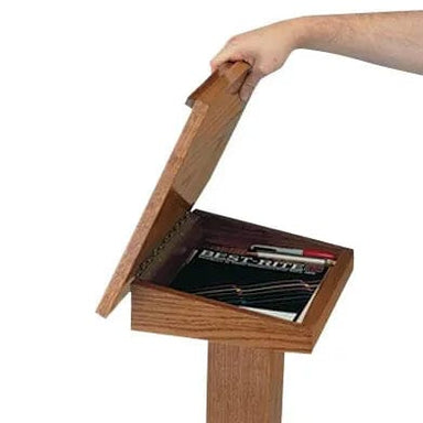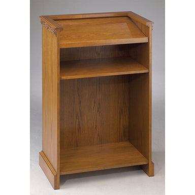 Description A very popular lectern. Constructed of Solid Red Oak and Oak Veneer plywood. Open in back with shelf for ample storage. This unit is be...