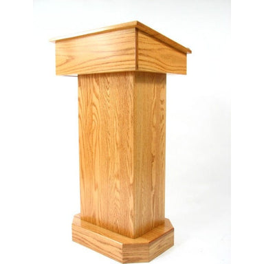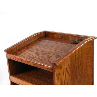 Description A very popular lectern. Constructed of Solid Red Oak and Oak Veneer plywood. Open in back with shelf for ample storage. This unit is be...